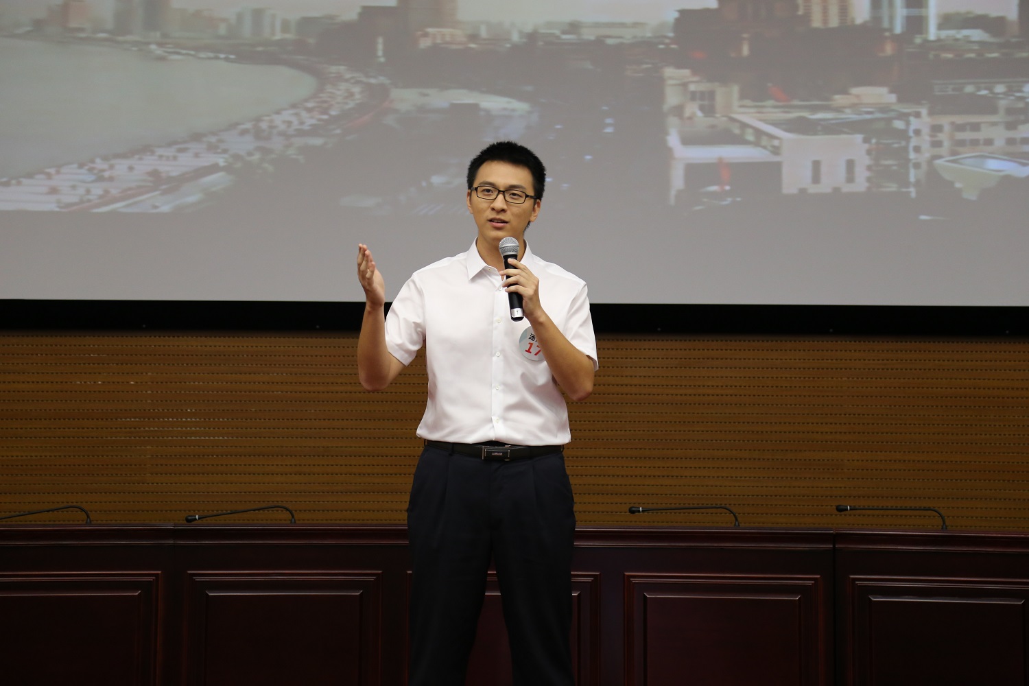 这里还有这样一组数据。10年,11元3角8分,169.8亿港币。从2005年7月8日中国建筑国际集团有限公司在香港港交所上市到我走上台前的这一刻,在这十年间,公司股票,HK3311,从0.43元到如今的11元3角8分,股票上涨了2646%,而在刚刚发布的2015年度中期业绩中,公司更是实现了了169.8亿港币营业额的骄人业绩!慎微笃行,精筑致远,公司用十年的时间续写了一个新的辉煌。如果把公司比成一艘船,那领导就好比是船长,为前行指明方向,而员工就构成这艘船的主体,每名员工就是船帆上的一根钉,一个齿轮。只有每根钉子都牢牢的扎根在自己的岗位上,只有每个齿轮都紧密的咬合在一起,这条大船才能继续破浪前行。还记得2013年度感动中海里皇姑热电锅炉检修班组那不眠不休的16个小时,还记得最美项目管理精英黄衡,他那深沉的父爱和对工作尽忠职守无私奉献的付出,还记得咱们3311土木公司那最美的地盘工程师叶珮芝,还有她那最美的一袭连衣裙。我相信这些只是我们公司广大员工的一个缩影,而正是有了千千万万个黄衡有了千千万个叶珮芝,公司才能从1979年在香港的从头起步开始,到如今又从香港杀回内地,走向海外。15家地区公司,海龙,中海监理,公司的足迹走遍世界各地。七十年前的硝烟已经散去,那些传奇人物和事迹也逐渐离我们远去。但如今,我们正在用自己的双手谱写一个新的传奇,这个传奇的名字就叫做,中建国际!