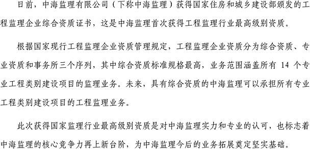 发稿时间:2017-05-23 供稿:中海监理(供)