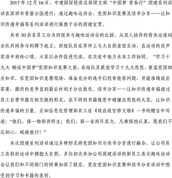 中建国际投资总部团支部举办“中国梦 青春行”团建系列活动