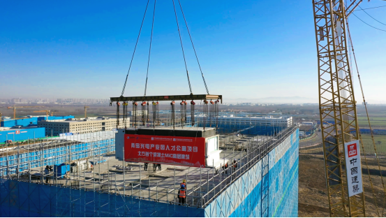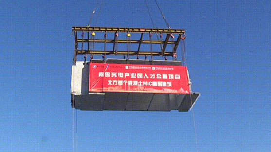 项目是北方首个混凝土MiC高层建筑,由3311旗下中建国际投资和中建海龙科技联合实施。其中,1、2号楼采用集团自主研发的混凝土MiC技术,引入724个MiC箱体,MiC总建筑面积2.32万平方米,装配率达70%以上,建成后可为超6500名产业人才筑梦安家,打造高知人才聚集地和产业人才智慧社区。目前,项目处于箱体快速吊装阶段,计划于2025年8月竣工。