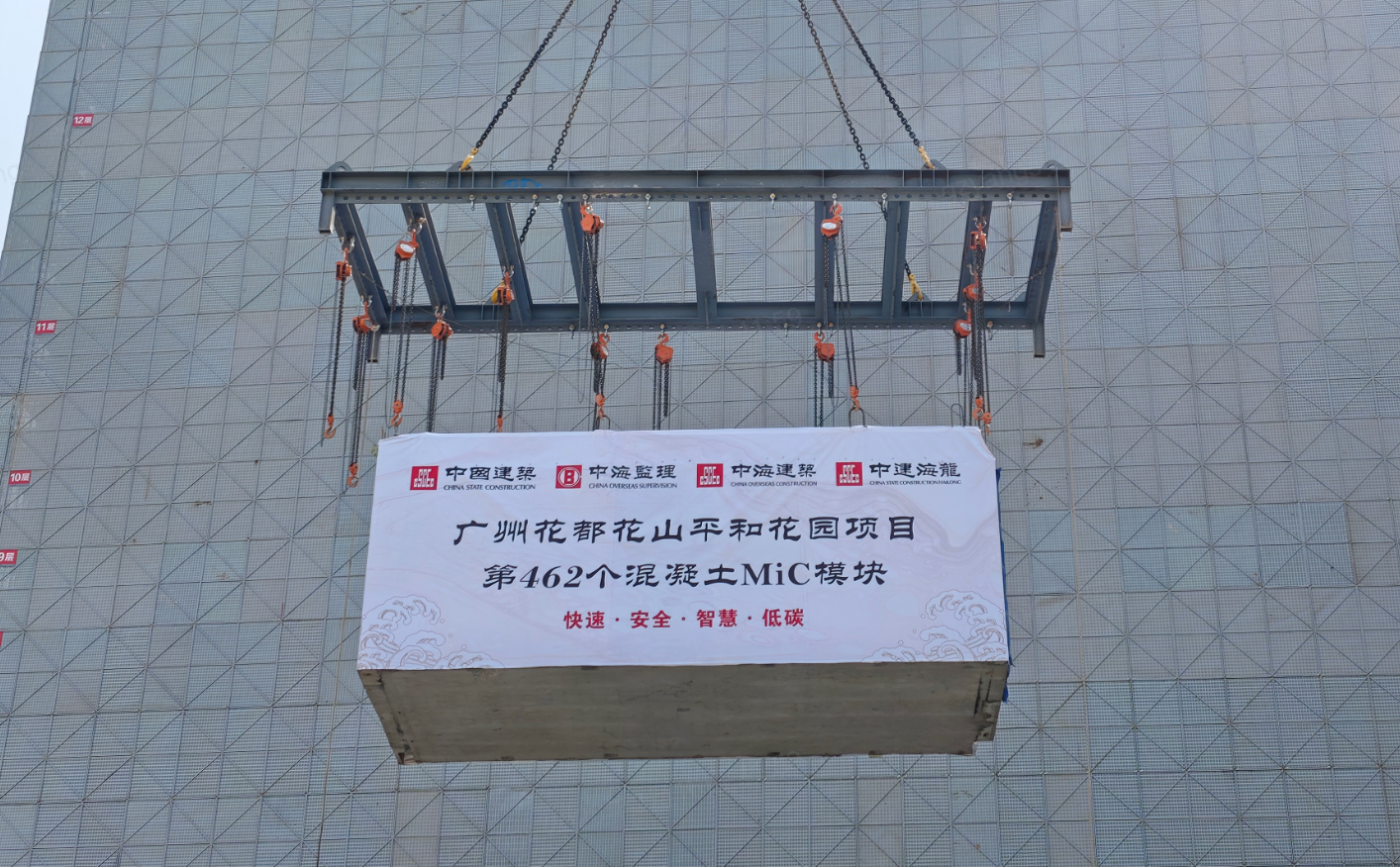 近日,随着第462个混凝土模块箱体平稳落位,广州市花都区花山平和花园项目16号楼完成全部模块吊装。该项目由中建国际投资(广东)有限公司投资建设,采用中建海龙智能建造-MiC(模块化集成建筑)技术体系建造,从首吊到完成13层楼的模块吊装仅用时70天。