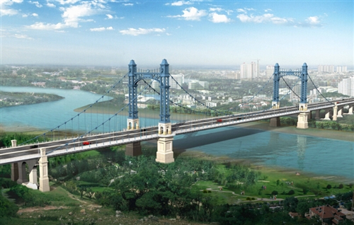 江汉六桥是武汉市城市规划的第六座跨汉江大桥,位于江汉五桥与江汉二桥之间,是武汉市首个双塔自锚式悬索桥,也是汉江上最宽的桥梁,建成之后将成为建桥之都的新名片。工程范围为汉口跨解放大道落地点至汉阳郭琴路,主线桥全长3050.1m。
